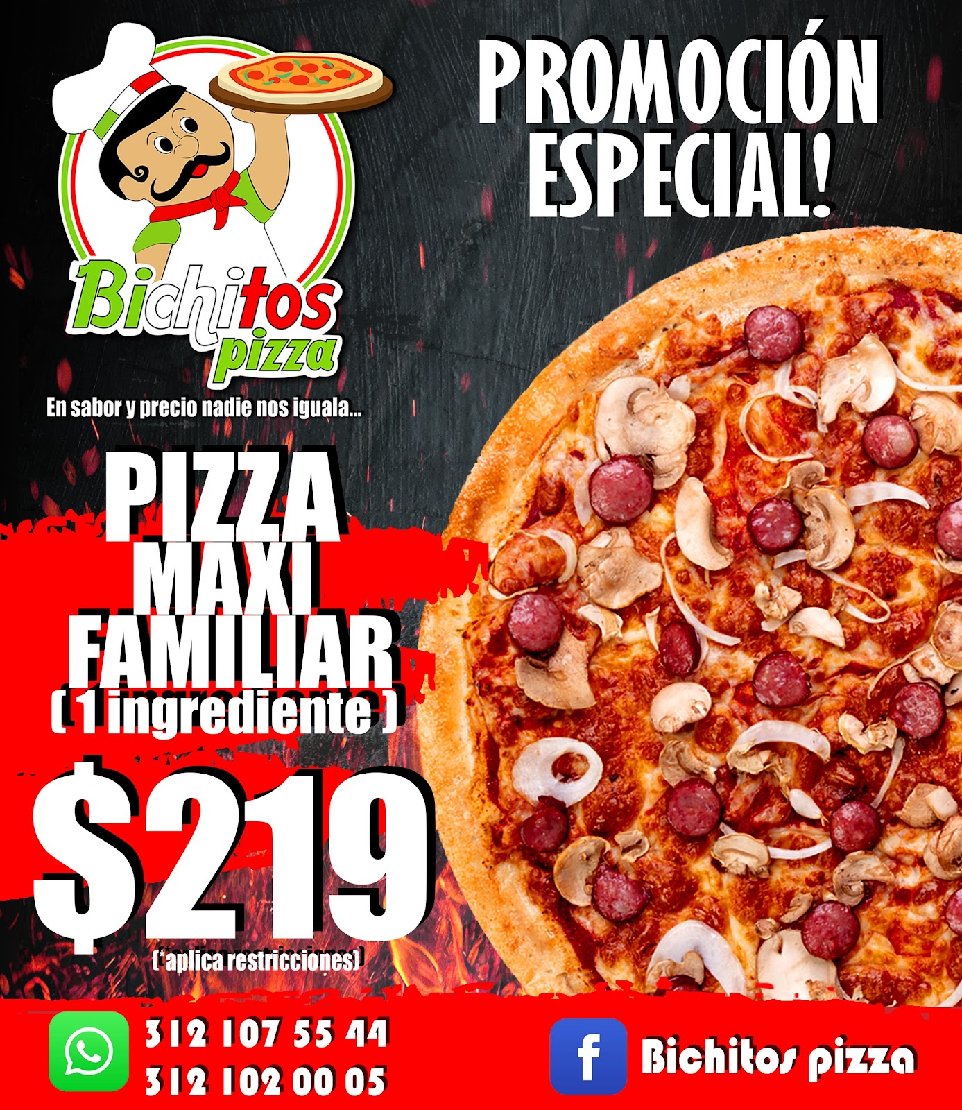 Bichitos Pizza es una pizzería destacada ubicada en el corazón de Comala, Colima, en la calle Progreso 91, Centro. Con una calificación de 4.5 sobre 5 basada en 29 reseñas, este restaurante es reconocido por su excelente servicio y pizzas deliciosas a precios accesibles. Ideal tanto para locales como para turistas que desean disfrutar de una experiencia gastronómica auténtica y económica. Bichitos Pizza ofrece una variedad de tamaños y sabores que se adaptan a todos los gustos, utilizando productos de calidad para garantizar un sabor inigualable. Además, cuentan con un servicio rápido y eficiente, incluyendo la opción de entrega a domicilio, facilitando así la comodidad del cliente. No deje de preguntar por sus promociones especiales, que hacen aún más atractiva la visita. Si está en Comala y busca un lugar para saborear una pizza bien elaborada en un ambiente agradable, Bichitos Pizza es una elección confiable y recomendada. Para más información o pedidos, puede contactar al teléfono 312 107 5544 o visitar su perfil en https://directoriocolima.com.