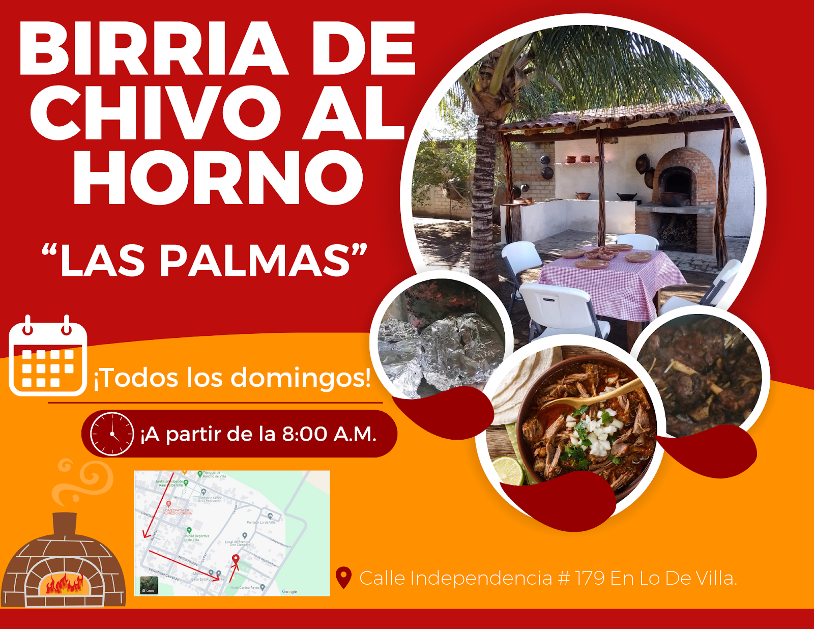 Birriería las Palmas is a well-known restaurant located at Independencia 179, Ejidal, Lo de Villa, in Colima. Renowned for serving authentic traditional birria, this establishment has become a notable culinary destination in the region. Its welcoming atmosphere and attentive service ensure a satisfying dining experience for both locals and visitors. With a 4-star Google rating based on genuine reviews, Birriería las Palmas stands out for the quality and flavor of its dishes, prepared with fresh ingredients and traditional methods. It is an ideal place for those looking to enjoy typical Mexican cuisine in a comfortable setting. For additional information, reservations, or inquiries, you can contact them at 312 107 6048 or visit their official website https://directoriocolima.com.