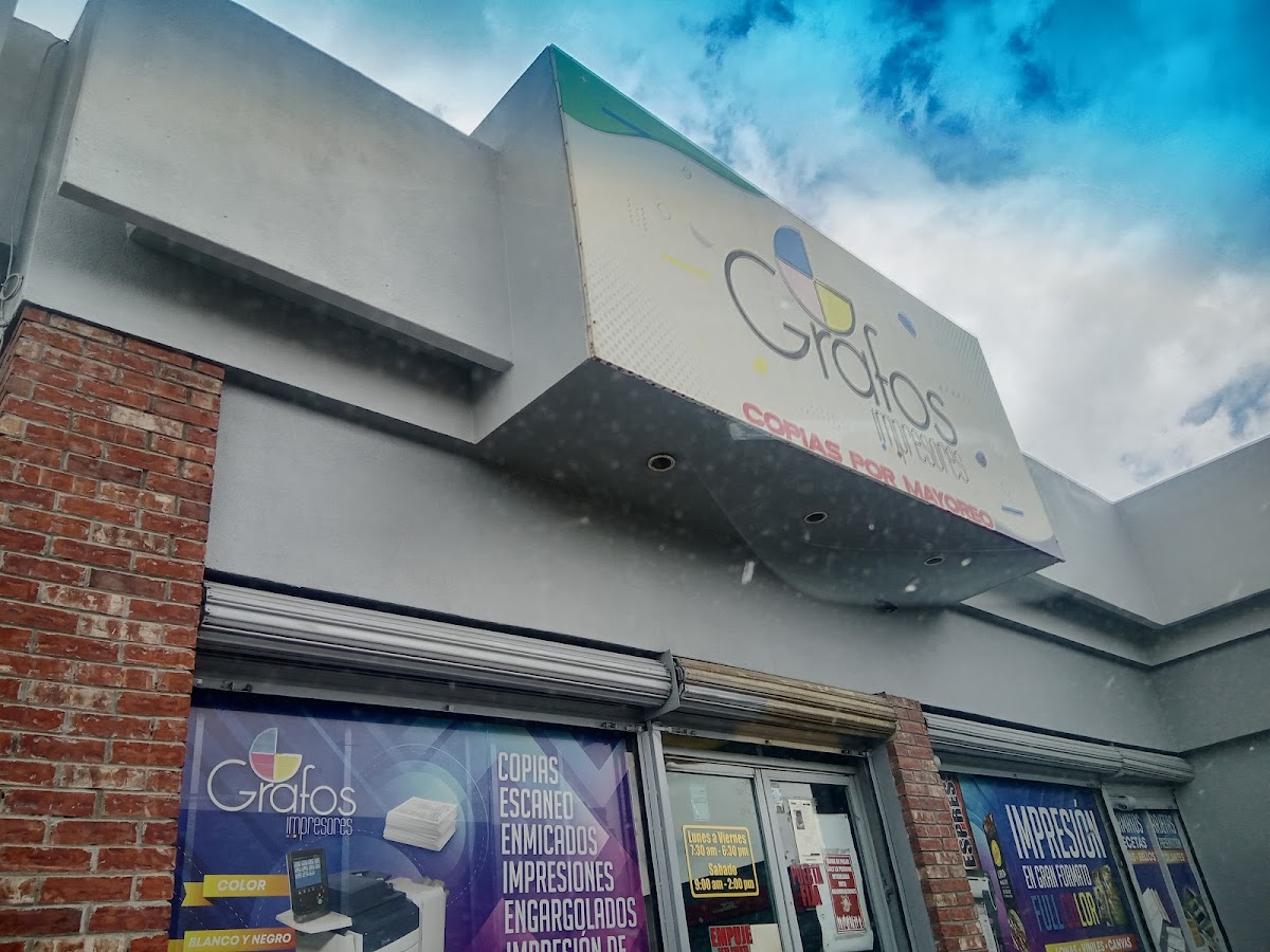 Grafos Impresores — Imprenta Ubicado en Juárez. Horario: lunes: 7:30–18:30; martes: 7:30–18:30; miércoles: 7:30–18:30; jueves: 7:30–18:30; viernes: 7:30–18:30; sábado: 9:00–14:00; domingo: Cerrado | Calificación: 4.2 (224 opiniones) Sitio web: https://www.facebook.com/grafosimpresoresoficial/