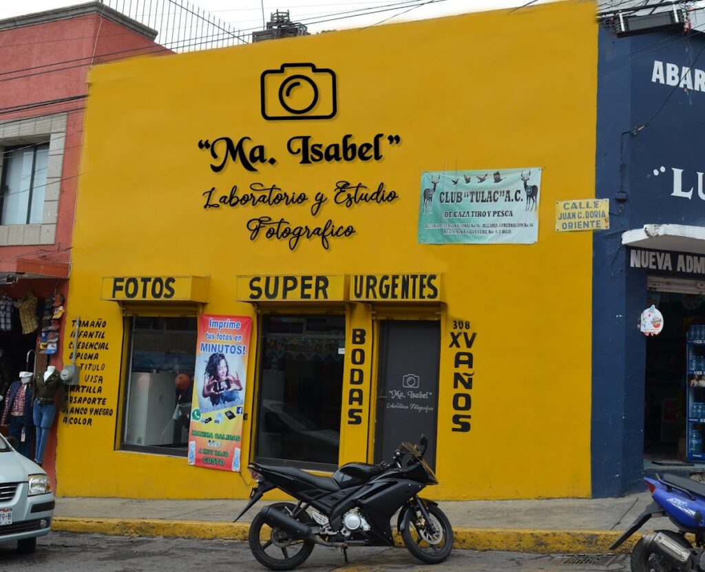Ma Isabel Laboratorio y Estudio Fotográfico — Fotógrafo Ubicado en Tulancingo. Horario: lunes: 9:30–14:30, 16:30–20:00; martes: 9:30–14:30, 16:30–20:00; miércoles: 9:30–14:30, 16:30–20:00; jueves: 9:30–14:30, 16:30–20:00; viernes: 9:30–14:30, 16:30–20:00; sábado: 9:30–20:00; domingo: 10:00–15:00 | Calificación: 4.8 (29 opiniones) Sitio web: https://www.facebook.com/LaboratorioMa.Isabel/