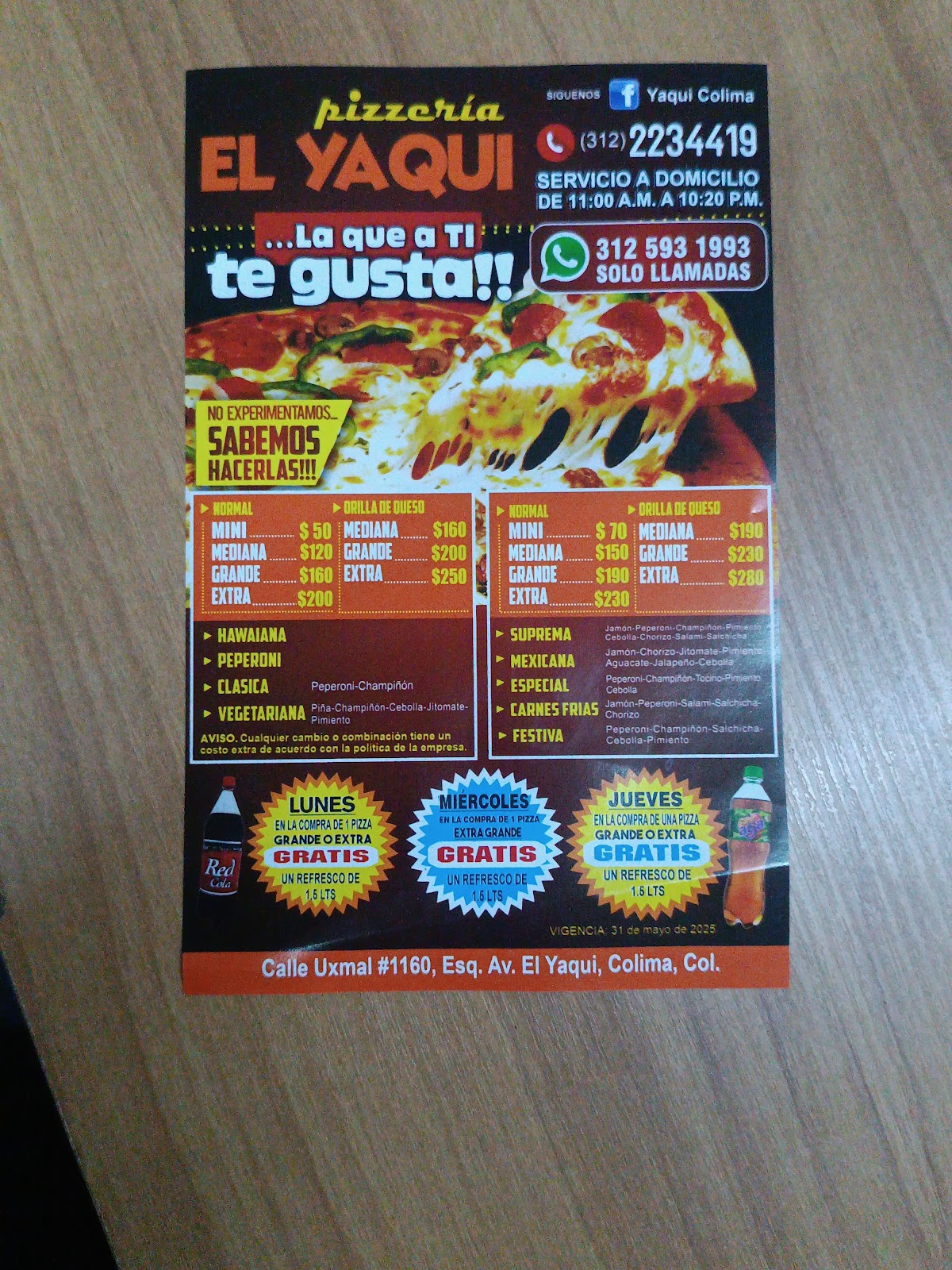 Pizzería El Yaqui, ubicada en C. Uxmal 1160a, El Yaqui, Colima, es una opción popular para los amantes de la pizza en la región. Con una calificación de 3.9 sobre 5 basada en 78 opiniones, este restaurante destaca por la rapidez en el servicio, especialmente a través de WhatsApp, y la posibilidad de realizar pagos vía transferencia bancaria. Los clientes valoran la frescura de los ingredientes y la atención al cliente, describiendo la pizza como muy buena y el servicio como excelente. Sin embargo, se han reportado algunas experiencias negativas aisladas relacionadas con la calidad en ciertos pedidos, lo que sugiere que el establecimiento podría mejorar en el control de calidad para garantizar la satisfacción constante. Pizzería El Yaqui es un punto de interés gastronómico en Colima para quienes buscan una comida rápida y sabrosa. Para más información o realizar pedidos, se puede contactar al teléfono 312 593 1993 o visitar su perfil en https://directoriocolima.com.