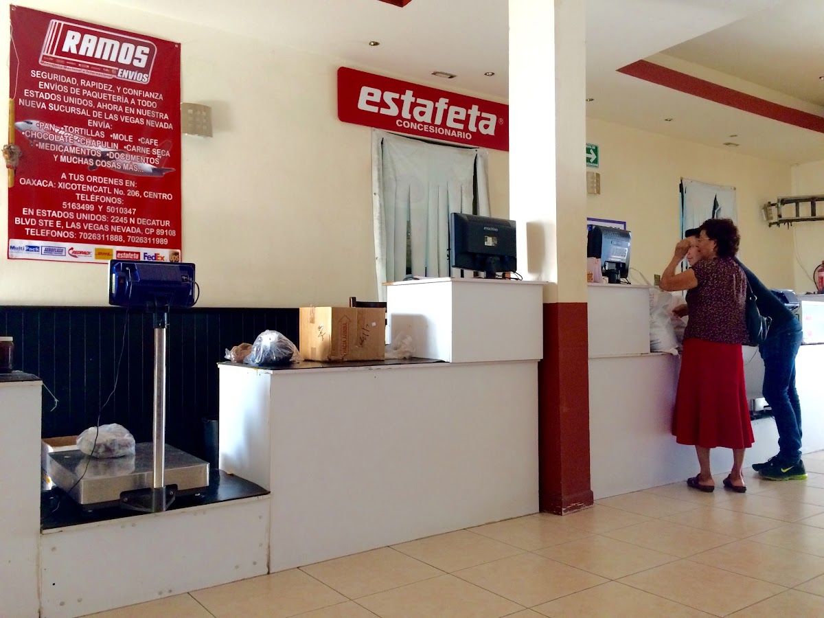 Ramos Envíos — Mensajería Ubicado en Oaxaca de Juárez. Horario: lunes: 9:00–17:00; martes: 9:00–17:00; miércoles: 9:00–17:00; jueves: 9:00–17:00; viernes: 9:00–17:00; sábado: 9:00–16:00; domingo: 9:00–16:00 | Calificación: 4.2 (104 opiniones)